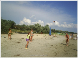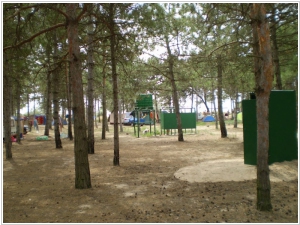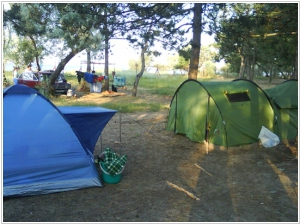 Людей меньше. Сосен нет, но есть маслины. Душ, туалет. Домиков нет. Цены те же. 1,5-2км в доль берега в сторону села Рыбаковка. Здесь уже второй раз отдыхаем.